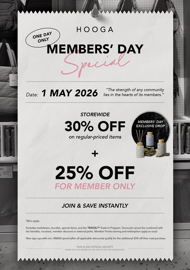 Here’s what we’ve set aside for you on Members’ Day. To begin, enjoy 30% off storewide, with an extra 25% off for members in Malaysia / tiered member savings of up to 25% off in Singapore.