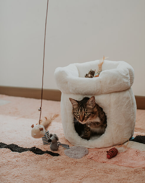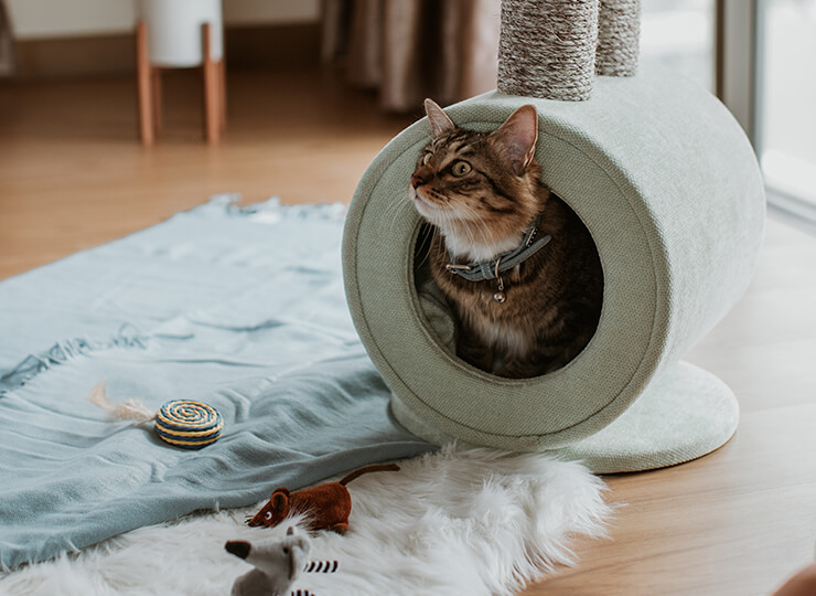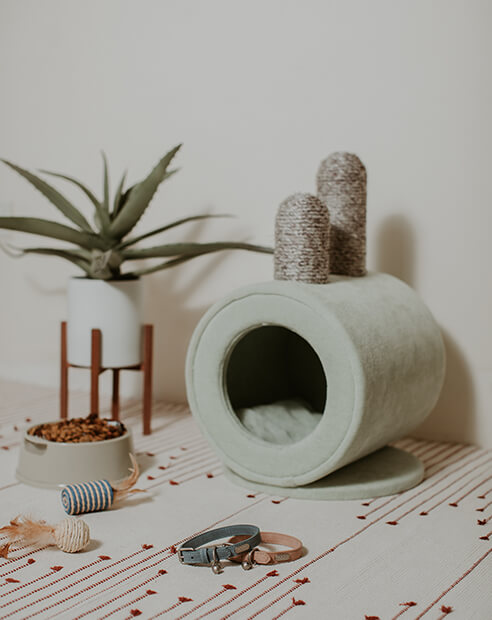 Start with what they know. Cats find reassurance in familiar textures and quiet corners that feel entirely their own. A dedicated nook like the Caven Cat Nook or Ettic Cat Nook offers a sense of security when the house feels busier than usual. Even placing their favourite mat in a consistent spot signals that their safe space remains unchanged.