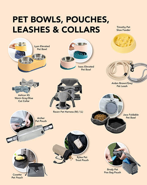 Pet Bowls, Pouches, Leashes & Collars